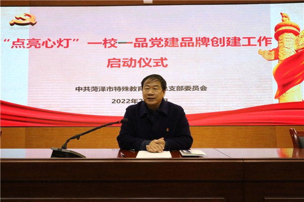 為全面提高學(xué)校黨建工作科學(xué)化水平,培育特色黨建品牌,根據(jù)市教育工委《關(guān)于開展中小學(xué)校“一校一品”黨建品牌創(chuàng)建工作的通知》(菏教工委字〔2021〕12號(hào))文件精神,2022年2月24日,菏澤市特殊教育中心黨總支在多功能室舉行了“點(diǎn)亮心燈”一校一品黨建品牌創(chuàng)建工作啟動(dòng)儀式。活動(dòng)由黨總支副書記、副校長(zhǎng)張士良同志主持,學(xué)校黨總支領(lǐng)導(dǎo)班子成員、各處室負(fù)責(zé)人、全體在職黨員同志共50余人參加會(huì)議。