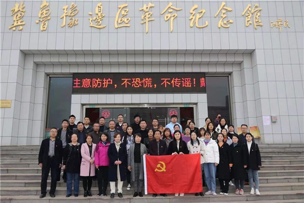 為慶祝中國(guó)共產(chǎn)黨成立100周年,回顧黨的光輝歷程,緬懷革命先烈,傳承革命精神,根據(jù)我校黨史學(xué)習(xí)教育活動(dòng)實(shí)施方案安排,2021年3月26日下午,菏澤市特殊教育中心全體黨員、入黨積極分子在黨總支書(shū)記毛丕顯同志的帶領(lǐng)下,來(lái)到冀魯豫邊區(qū)革命紀(jì)念館參觀學(xué)習(xí)。
